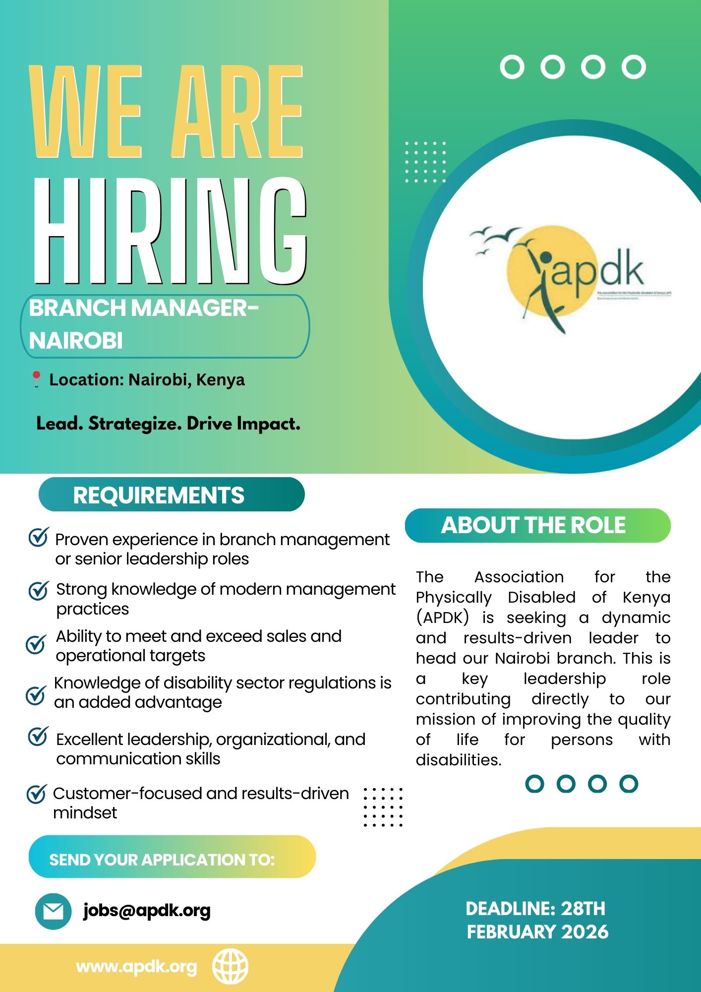Application Email: jobs@apdk.org